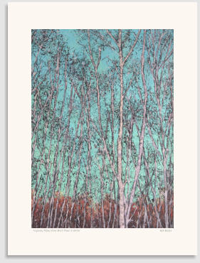 bright white trunks standing out against the bare branches, lit by the low